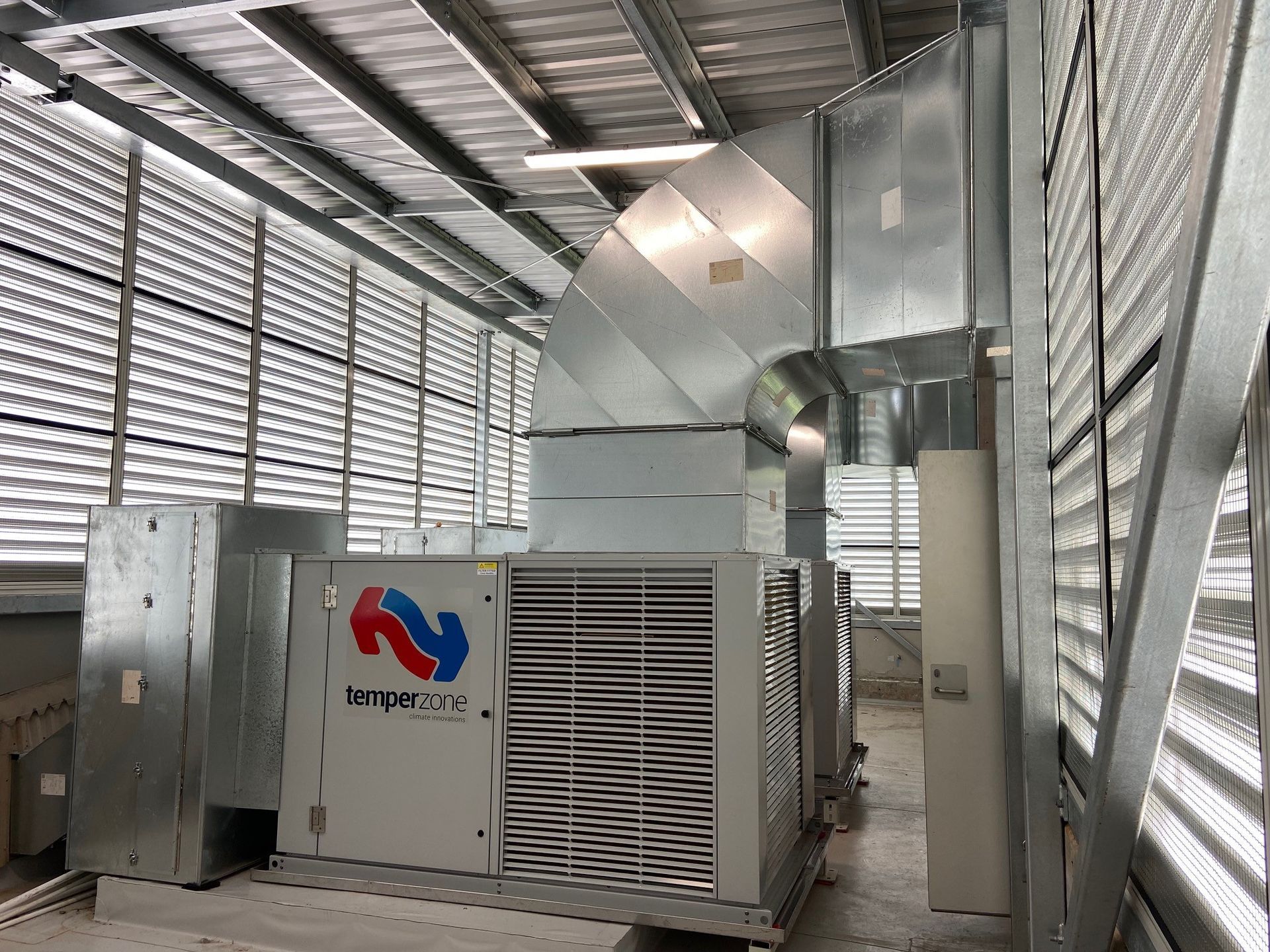 Previously, each building was serviced by a single rooftop package unit on the first floor and VRF split ducted equipment on the ground floor. All existing equipment was replaced with new units, while Newlands Commercial Construction carried out plant deck resealing and installed louvered enclosures.