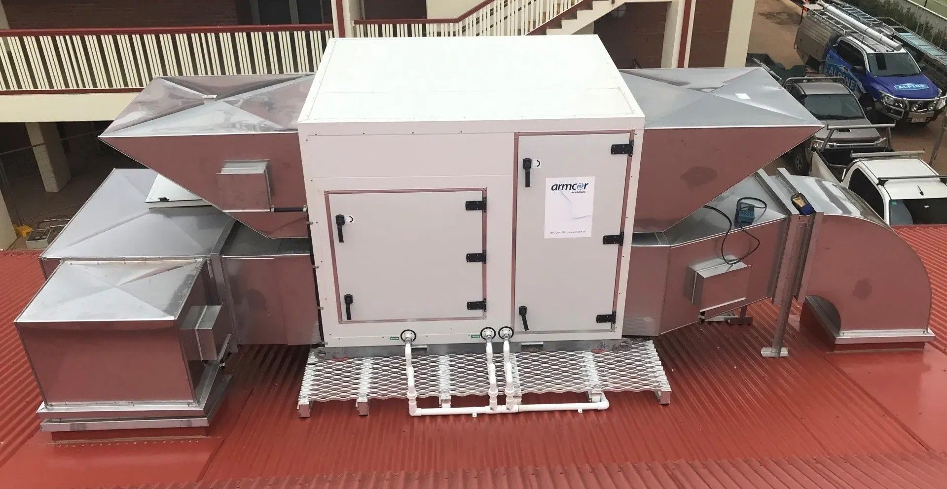- The design installed by the Alpine Team was an Armcor ERV Package unit which distributed conditioned air to the pool area.